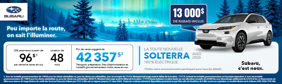 © Subaru Canada, Inc. 2026. Tous droits réservés.