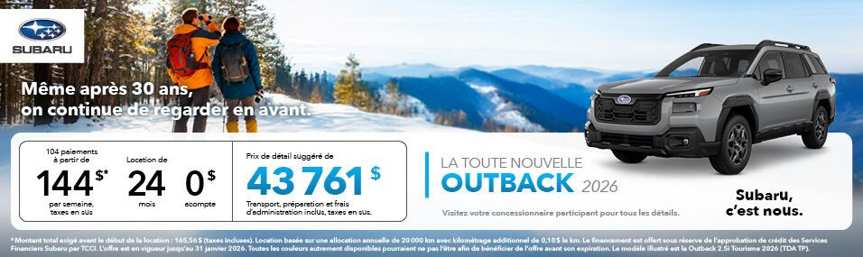© Subaru Canada, Inc. 2026. Tous droits réservés.